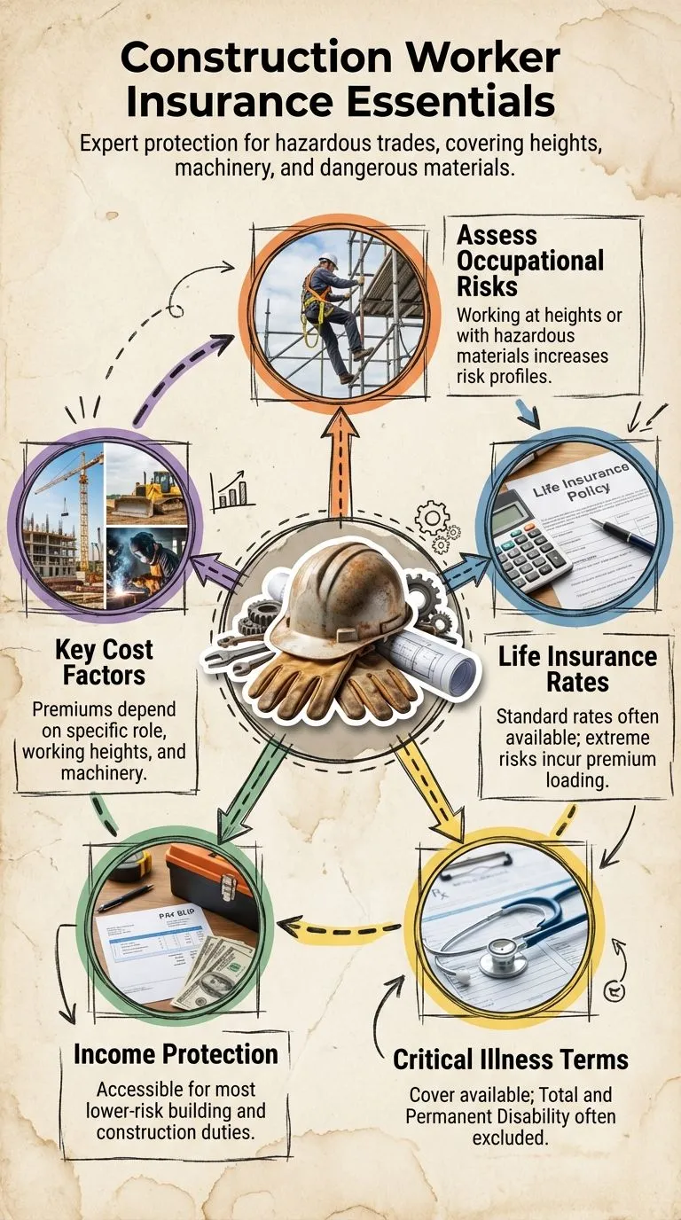 Construction workers life insurance companies may consider builders and construction in “high-risk ” occupations to be at higher risk for a claim, making it possible to increase rates to offset the risk.